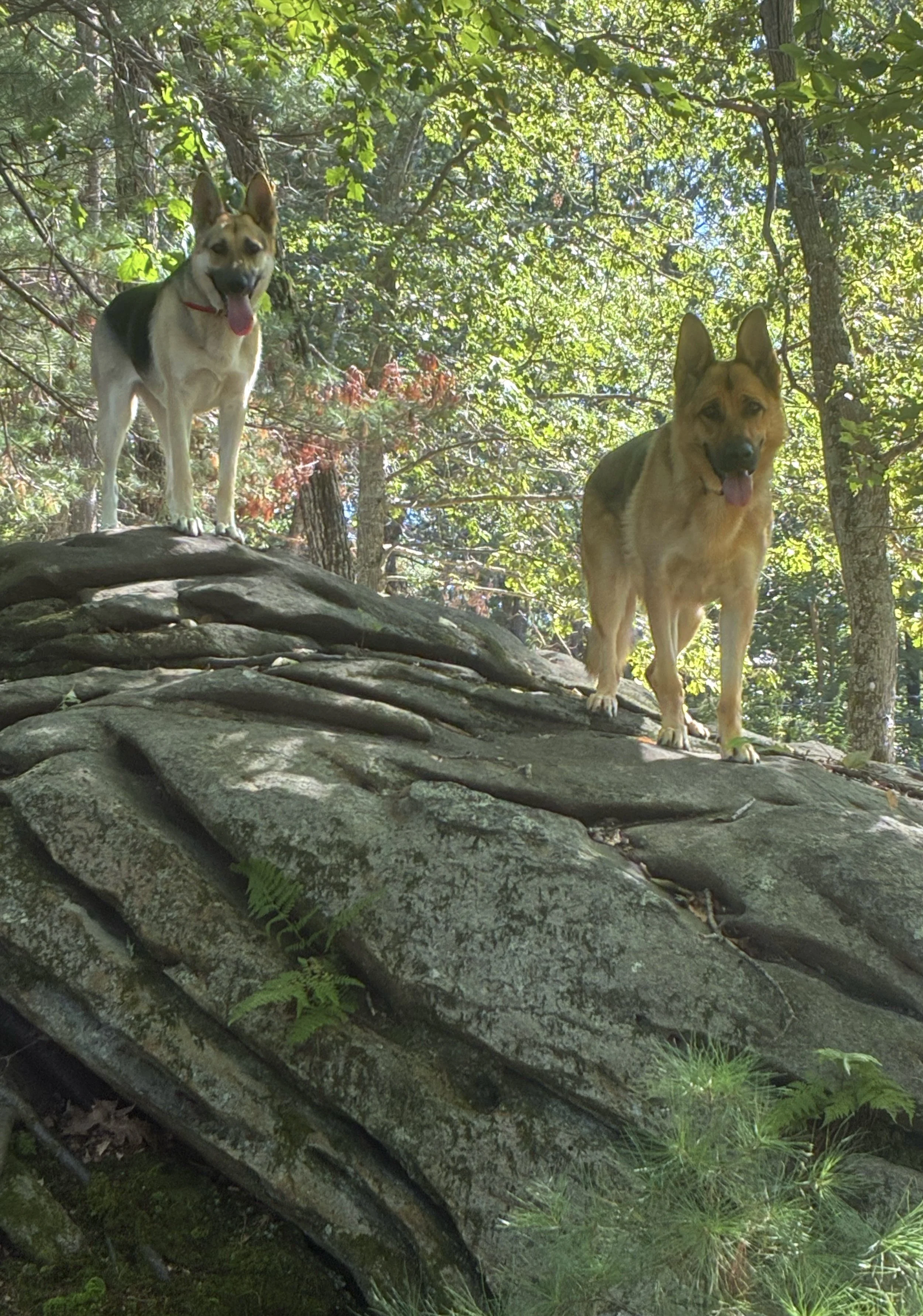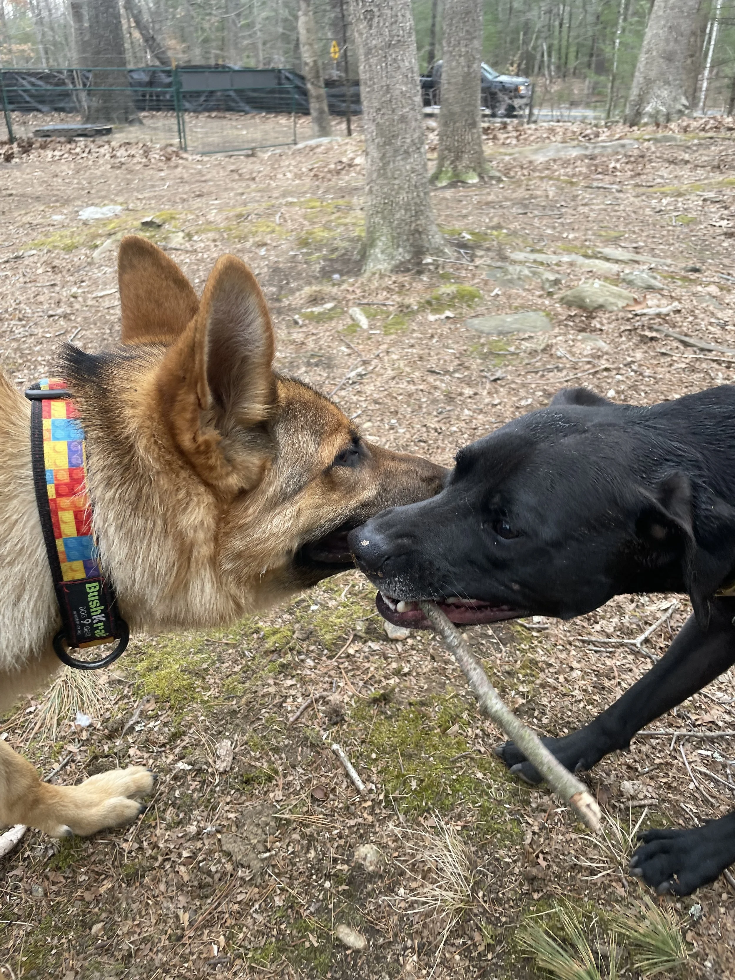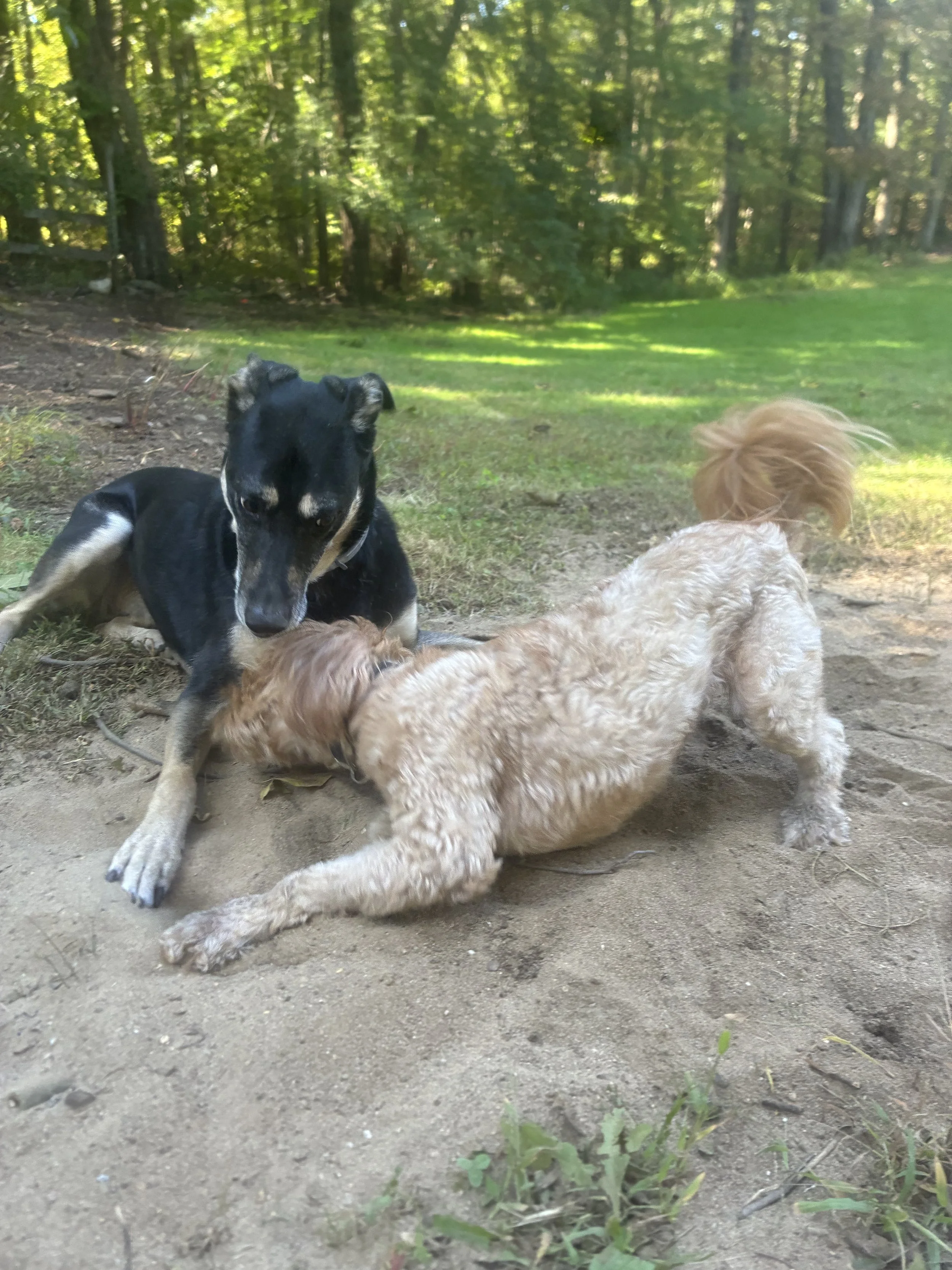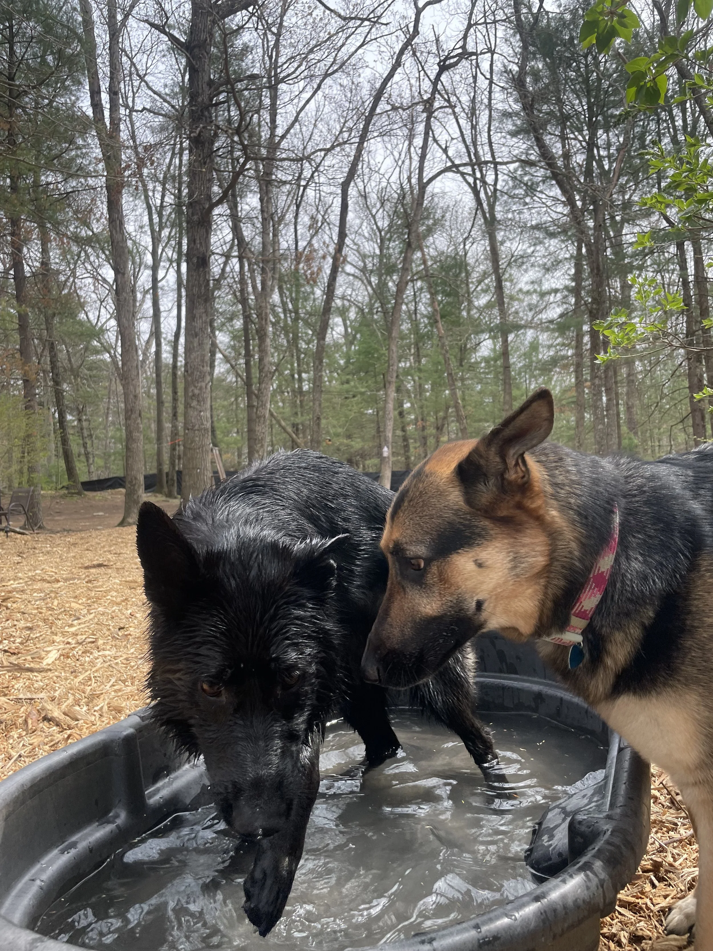 All dogs have some interaction through fencing /kennels before being put together. If positive interest between dogs is mutual, I will put them together. Some dogs take more time to warm up to others. Some dogs simply aren’t dog social and will get their own time outside throughout the day (playing ball, trail walk, etc).